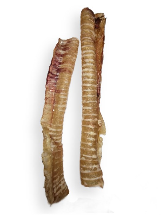 Очень ценный продукт в рационе собак, так как содержит множество важных витаминов. Молодым щенками особенно ценно это лакомство при смене зубов, так как трахея отлично развивает челюстные мышцы.